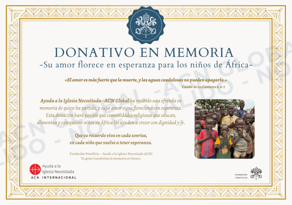 Tú eliges cómo honrar la memoria de quien amas; nosotros lo transformamos en ayuda concreta para la Iglesia que sufre.